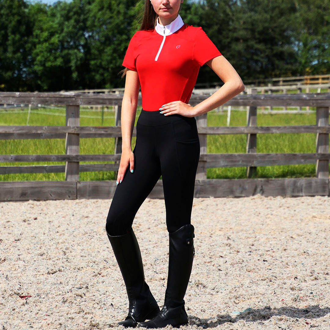 Superbly crafted with a handy phone pocket, silicone knee for maximum grip in the saddle and lycra sock at the bottom to ensure optimum comfort under long boots or socks, helping you to focus on you and your horse for optimum performance on show day!