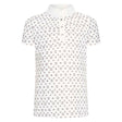 Enhance your child's equestrian style with the Imperial Riding Children's Roxy Tech Top. This competition top features a navy printed design on a white ground, with a white collarstand and fancy rhinestone buttons. The gathering at the chest adds a touch of elegance while the short slit centrefront allows for ease of movement. Perfect for any young rider looking to make a statement in the arena.