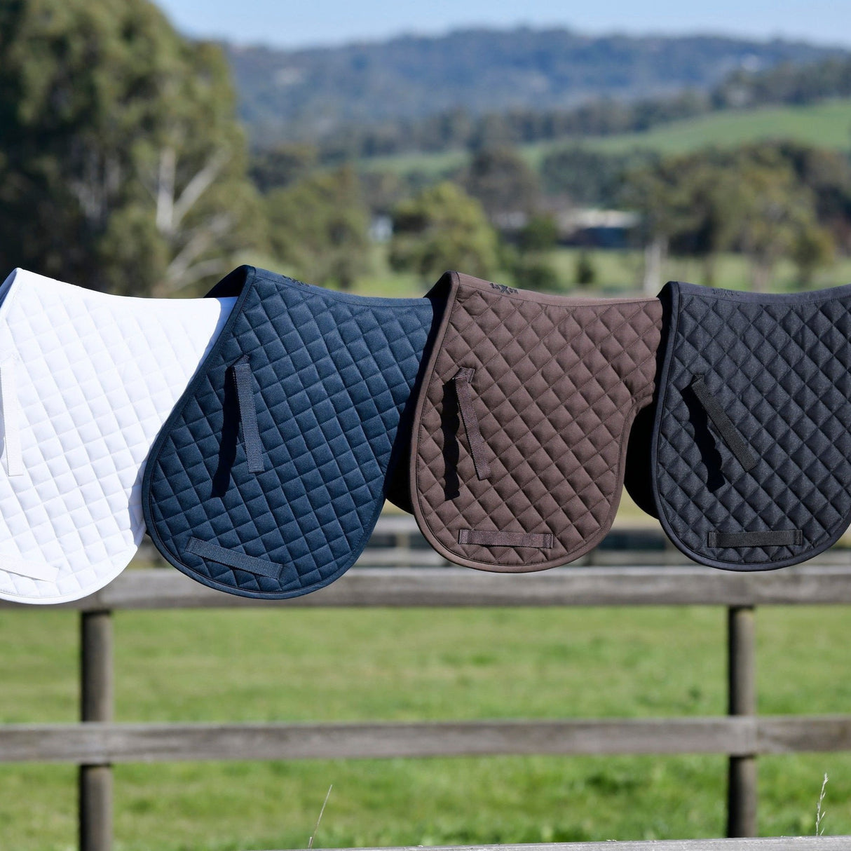 - Durable diamond quilted polycotton all purpose saddle shaped pad.