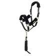 Adjustable both sides of the head and at the nose with a clip throat lash for convenience. The headcollar and rope are accessorised with high shine gold colour fittings. An ARMA plate for a distinctive look.